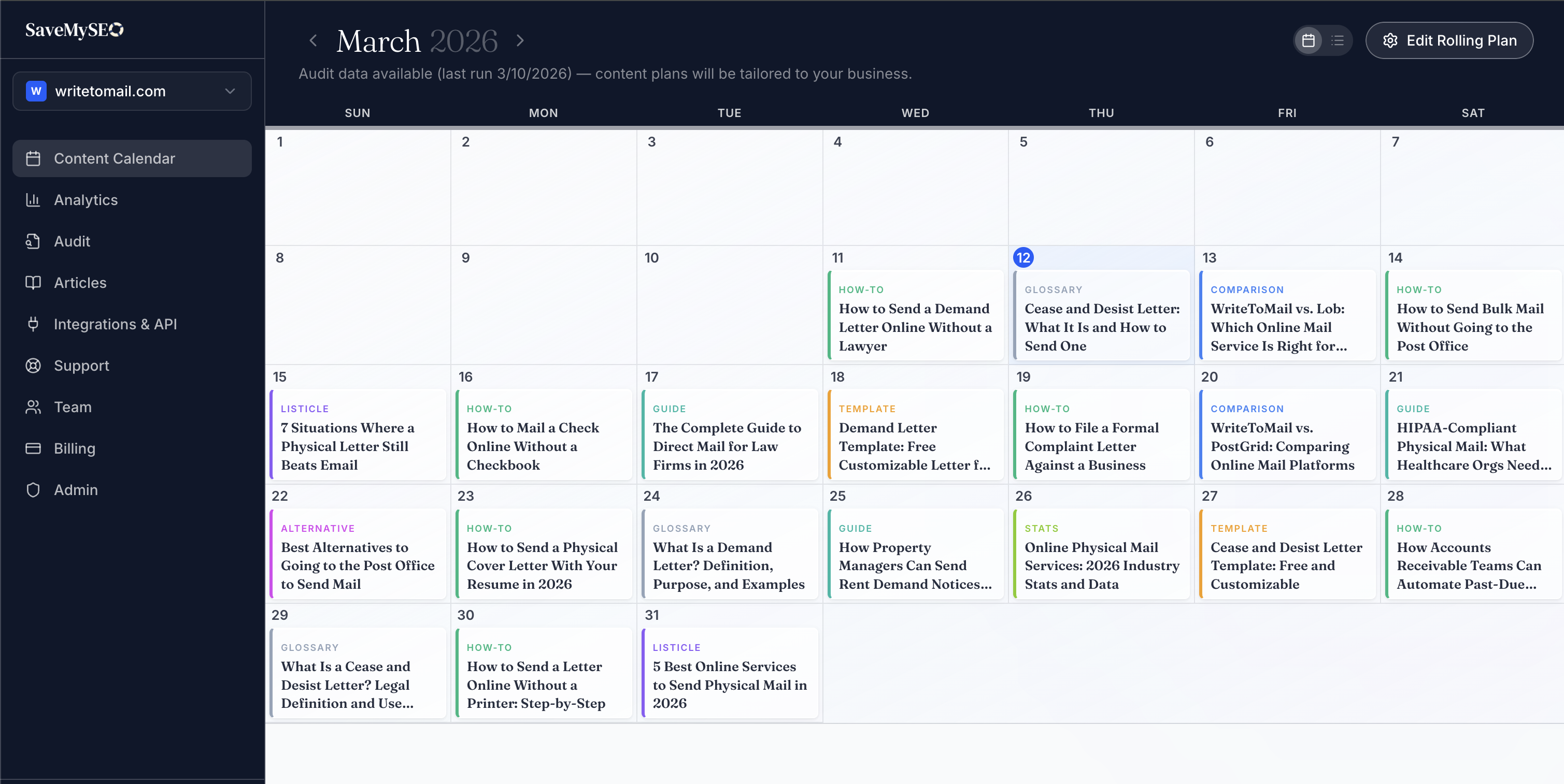 Our AI runs 50+ checks on your website and audits your Google Business Profile. Then we build a content plan targeting your market and service areas.